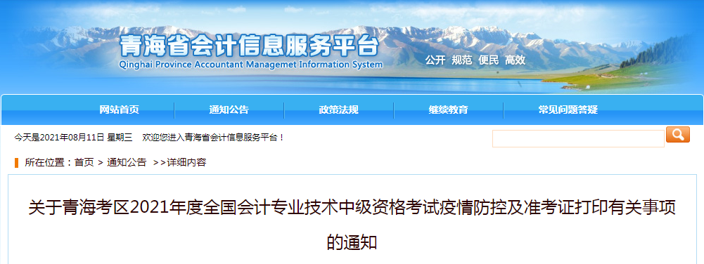 為保障廣大考生身體健康,確保青海考區(qū)2021年度全國會計專業(yè)技術(shù)中級資格考試順利進行,現(xiàn)就考試期間疫情防控及準考證打印等有關(guān)事項通知如下: