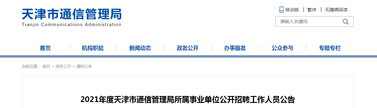 2021年度天津市通信管理局所屬事業(yè)單位公開招聘人員計(jì)劃表