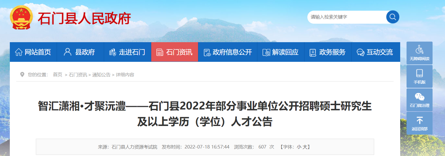 石門縣人民政府網(wǎng)站信息公開欄目中招考信息