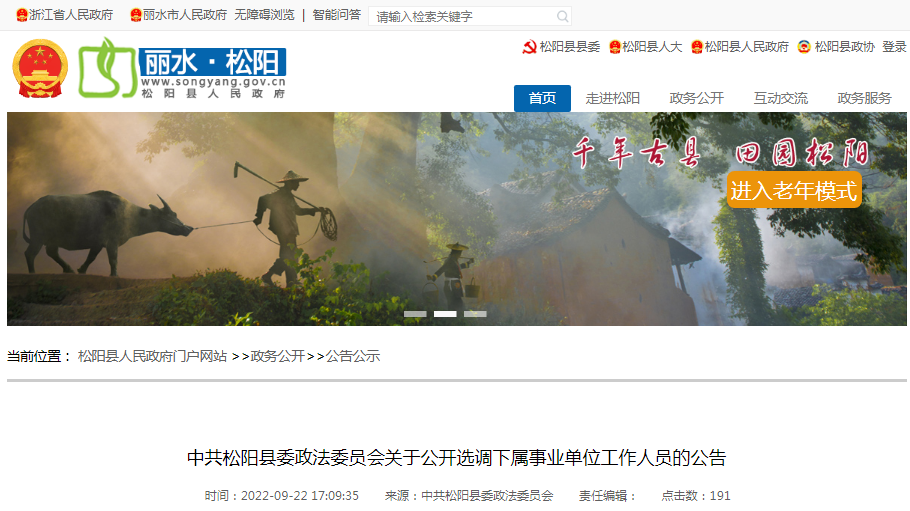 2022年浙江省麗水市松陽(yáng)縣委政法委員會(huì)選調(diào)下屬事業(yè)單位人員公告【1人】已發(fā)布?,F(xiàn)將招聘公告原文發(fā)布如下: