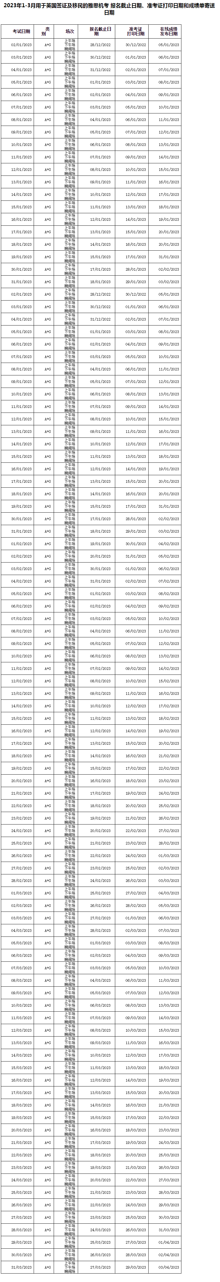 經(jīng)與考試主辦方協(xié)商,現(xiàn)就2023年1-3月份雅思各類考試相關安排通知如下: