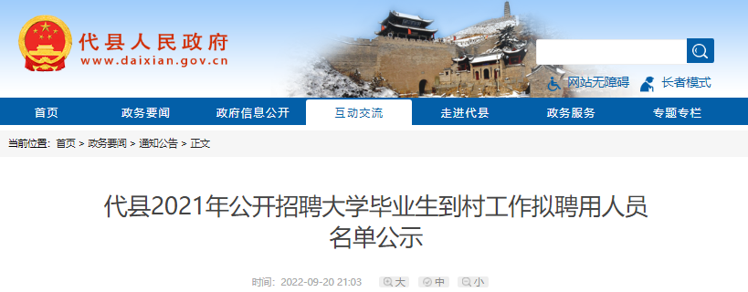附件:代縣2021年公開(kāi)招聘大學(xué)畢業(yè)生到村工作擬聘用人員名單公示