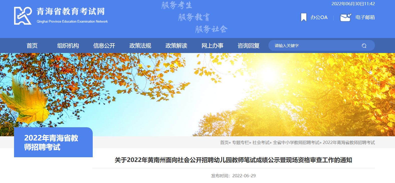 現(xiàn)將參加2022年黃南州面向社會公開招聘幼兒園教師進入現(xiàn)場資格審查人員的筆試成績進行公示,并將現(xiàn)場資格審查的有關事項通知如下: