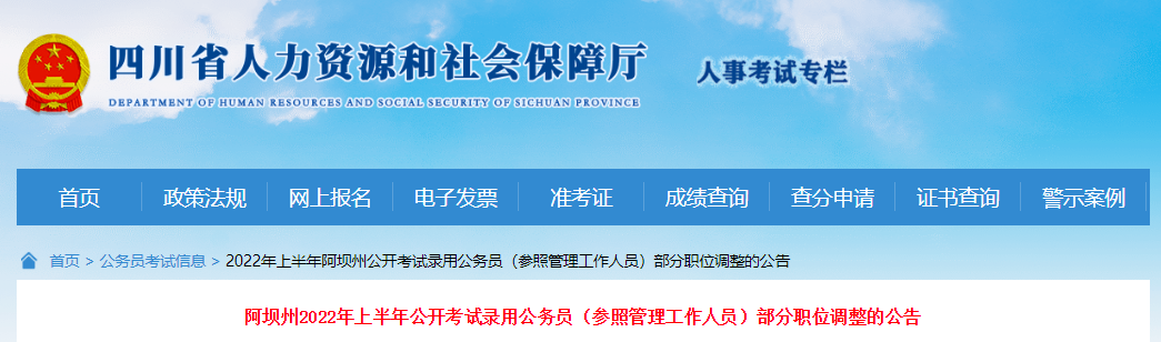 阿壩州2022年上半年公開考試錄用公務(wù)員(參照管理工作人員)部分職位調(diào)整的公告