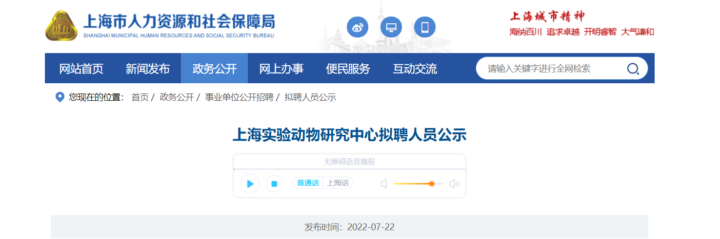點(diǎn)擊查看:2022上海實(shí)驗(yàn)動(dòng)物研究中心擬聘人員公示