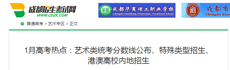 從成都招生考試網(wǎng)了解到,四川成都2022年1月藝術(shù)高考熱點公布。具體如下: