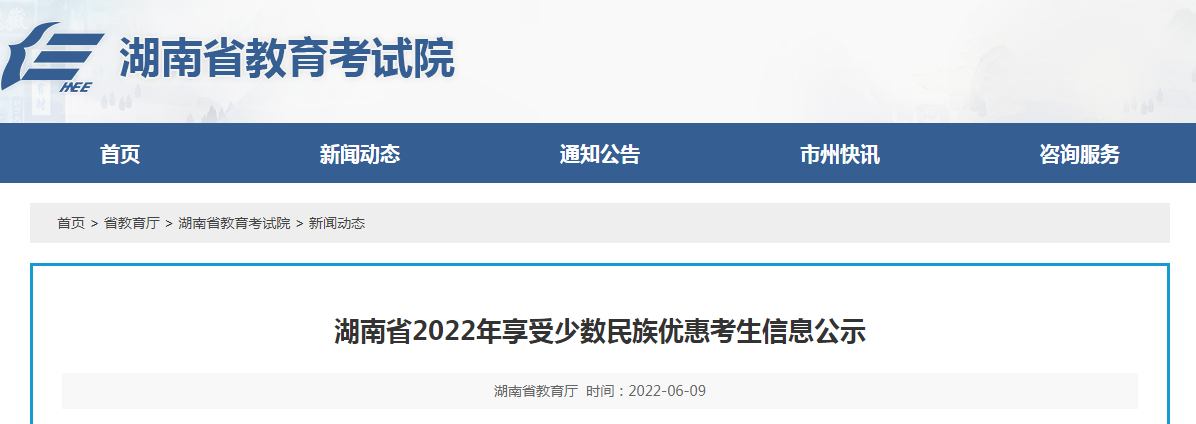 從湖南省教育考試院了解到,湖南省2022年享受少數(shù)民族優(yōu)惠考生信息公示已發(fā)布,詳細(xì)內(nèi)容如下: