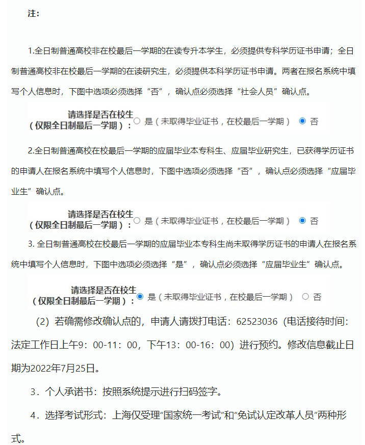 (1)申請(qǐng)人填寫信息時(shí),應(yīng)根據(jù)系統(tǒng)提示的“確認(rèn)范圍”自行選擇及確認(rèn)點(diǎn)。根據(jù)“確認(rèn)范圍”不同,上海市16個(gè)區(qū),每個(gè)區(qū)均設(shè)有初中及以下-**區(qū)受理點(diǎn)(應(yīng)屆畢業(yè)生)、初中及以下-**區(qū)受理點(diǎn)(社會(huì)人員)、高中及中職-**區(qū)受理點(diǎn)(應(yīng)屆畢業(yè)生)、高中及中職-**區(qū)受理點(diǎn)(社會(huì)人員)四個(gè)確認(rèn)點(diǎn)。各受理點(diǎn)根據(jù)任教學(xué)段和是否應(yīng)屆畢業(yè)生嚴(yán)格劃分確認(rèn)范圍,申請(qǐng)人請(qǐng)根據(jù)個(gè)人實(shí)際情況選擇確認(rèn)點(diǎn),提交后申請(qǐng)人將無法在系統(tǒng)中自行修改確認(rèn)點(diǎn)。確認(rèn)點(diǎn)選錯(cuò)將無法正常受理。