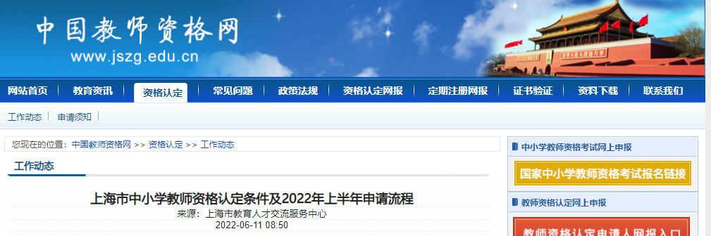 從中國教師資格網(wǎng)獲悉,上海市中小學(xué)教師資格認(rèn)定條件及2022年上半年申請(qǐng)流程已公布,請(qǐng)相關(guān)人員仔細(xì)閱讀,具體詳情如下: