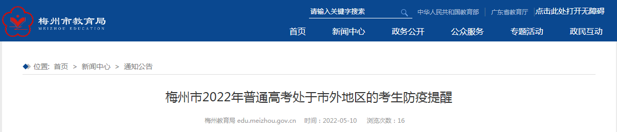 從梅州市教育局了解到,廣東梅州2022年普通高考處于市外地區(qū)的考生防疫提醒已發(fā)布,詳細內(nèi)容如下: