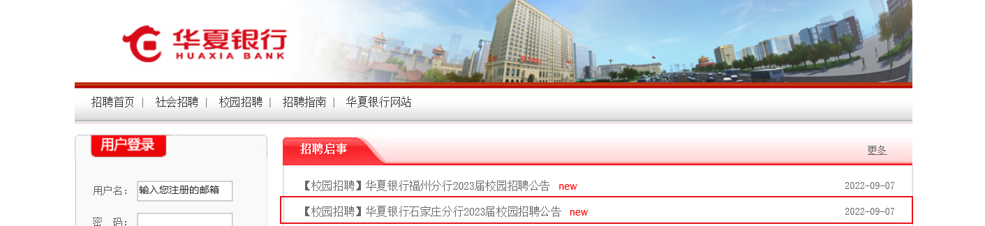 2023屆華夏銀行河北石家莊分行校園招聘若干人,報名時間:2022年9月30日截止,現(xiàn)將招聘公告發(fā)布如下: