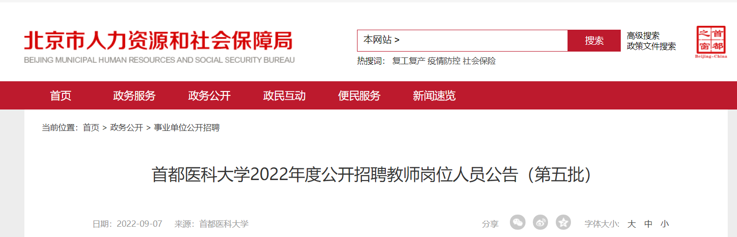 2022年度北京首都醫(yī)科大學(xué)公開招聘教師崗位人員公告(第五批)已發(fā)布,報名時間:即日起-2022年9月16日24:00,現(xiàn)將招聘公告原文發(fā)布如下: