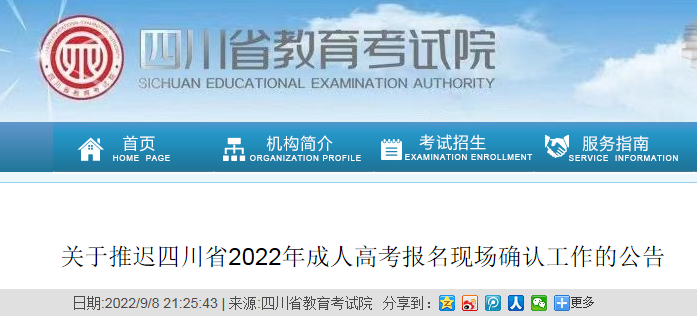 原文標(biāo)題:關(guān)于推遲四川省2022年成人高考報(bào)名現(xiàn)場(chǎng)確認(rèn)工作的公告
