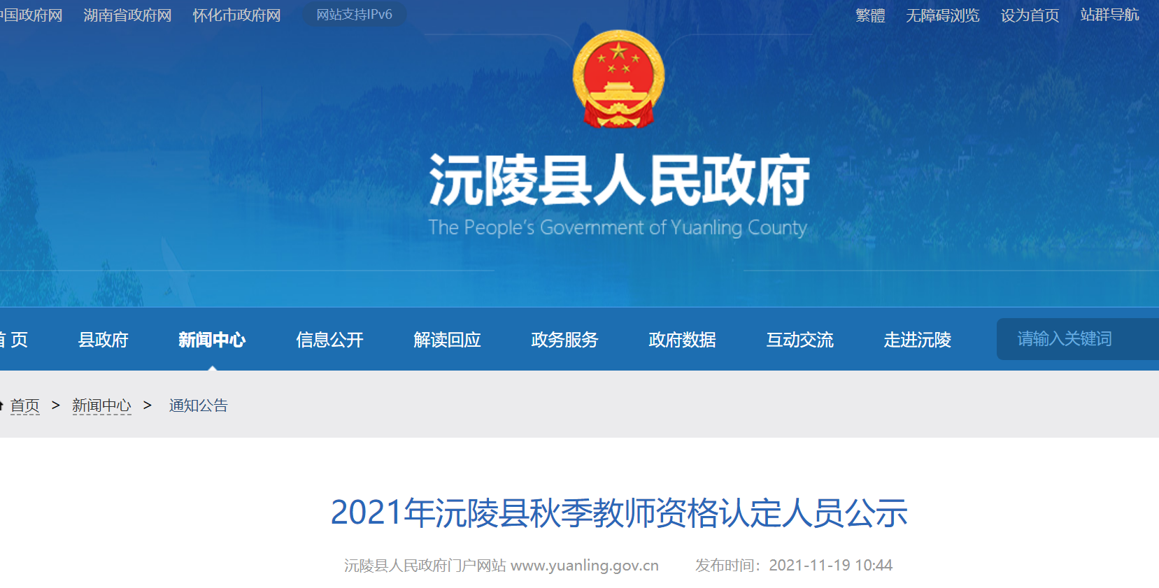 從沅陵縣人民政府獲悉,2021秋季湖南懷化沅陵縣教師資格認(rèn)定人員公示,請(qǐng)相關(guān)人員仔細(xì)閱讀,具體詳情如下: