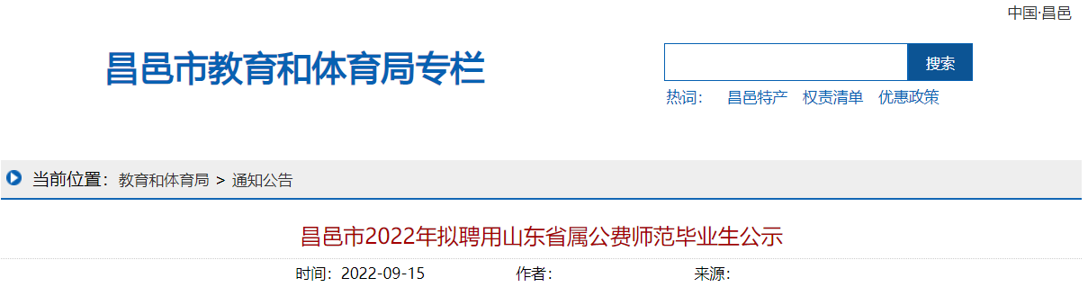 原文標(biāo)題:昌邑市2022年擬聘用山東省屬公費(fèi)師范畢業(yè)生公示