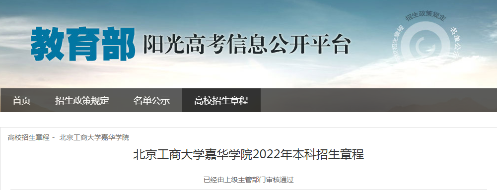 從教育部陽光高考信息公開平臺獲悉,北京工商大學(xué)嘉華學(xué)院2022年本科招生章程已公布,具體詳情如下: