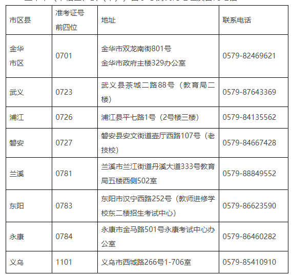 金華市(市轄區(qū)、縣(市))自學(xué)考試機(jī)構(gòu)地址及咨詢電話