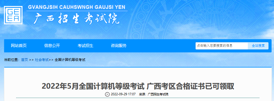 原文標題:2022年5月全國計算機等級考試廣西考區(qū)合格證書已可領取