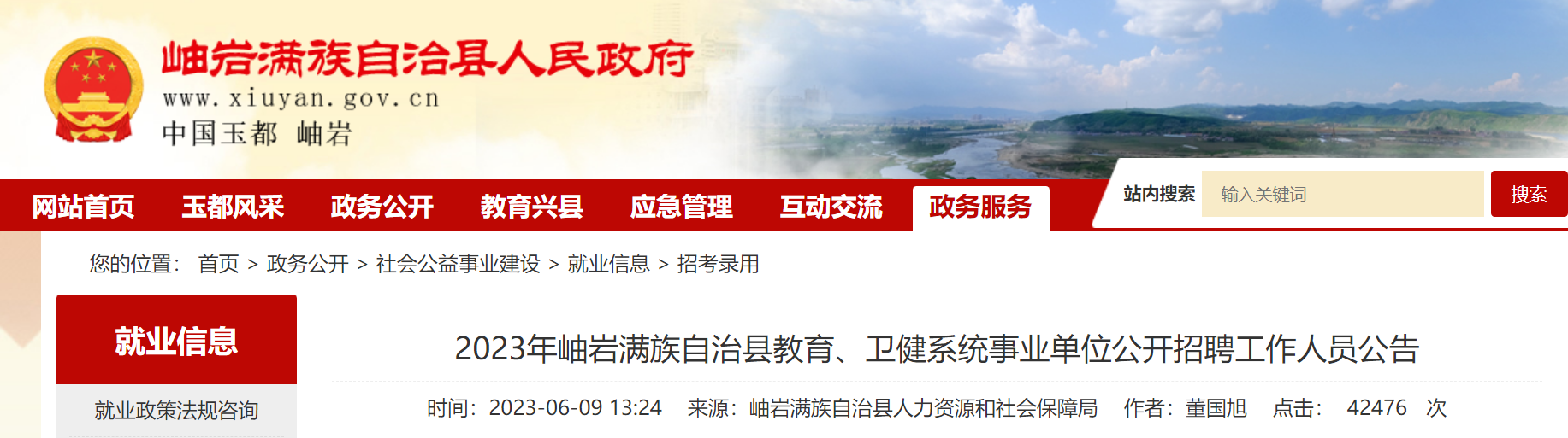 通過岫巖滿族自治縣人民政府官方網(wǎng)站(http://www.xiuyan.gov.cn)發(fā)布招聘公告和相關(guān)事宜。