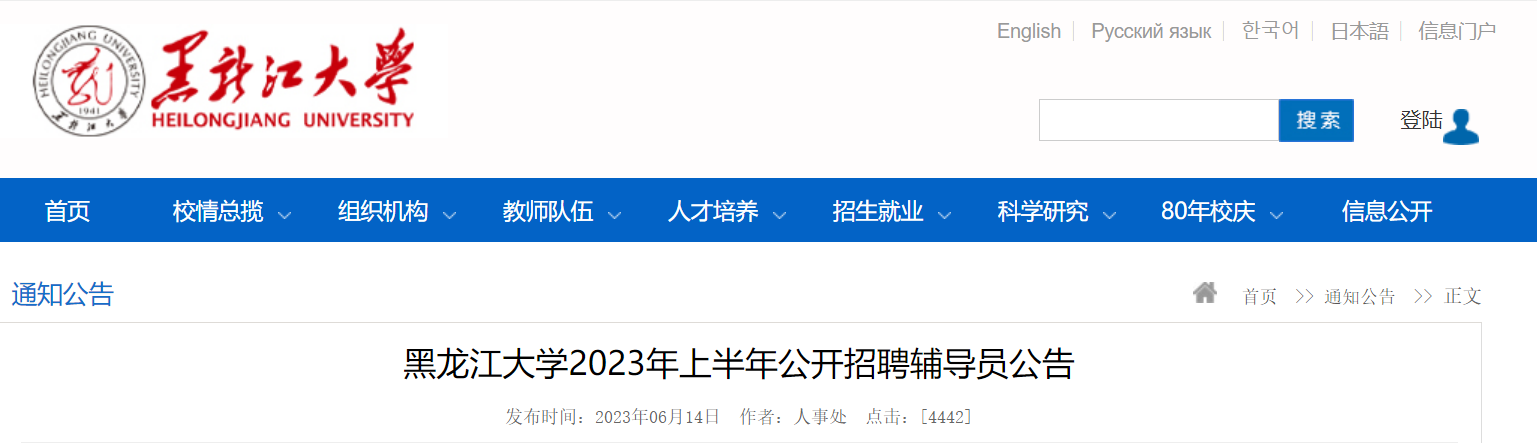 2023年上半年黑龍江大學(xué)公開招聘輔導(dǎo)員21人,報(bào)名時(shí)間:2023年6月14日至2023年6月24日17:00?,F(xiàn)將招聘公告原文發(fā)布如下: