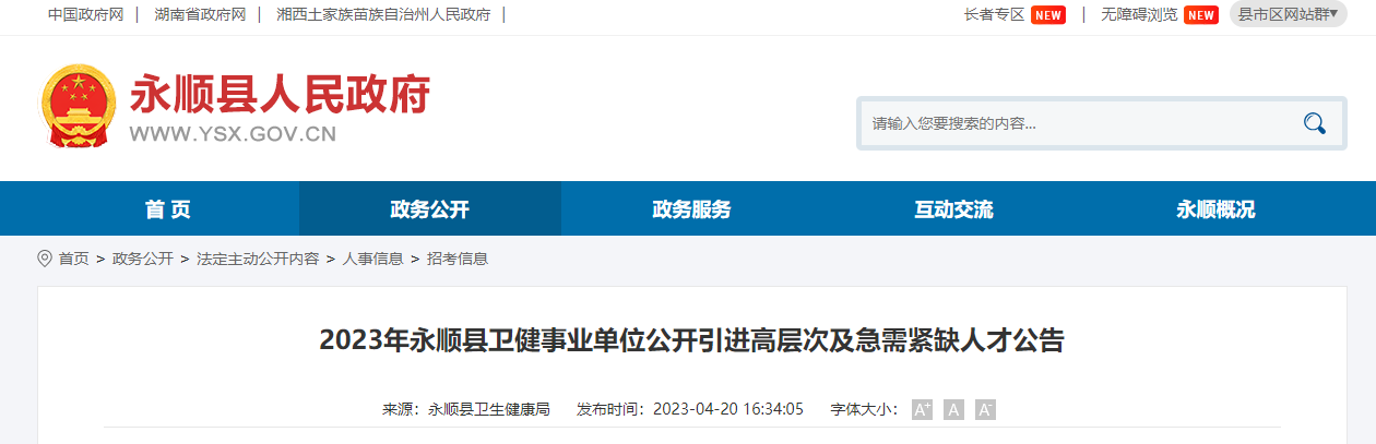 原文標(biāo)題:2023年永順縣衛(wèi)健事業(yè)單位公開引進(jìn)高層次及急需緊缺人才公告