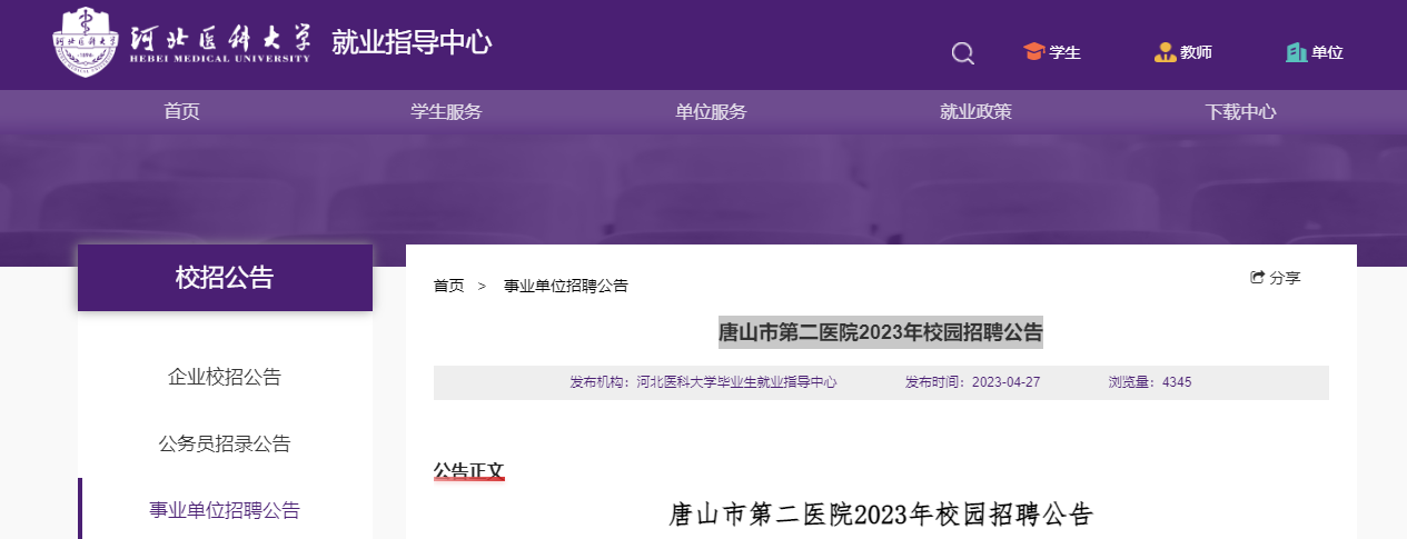 1.唐山市第二醫(yī)院2023年校園招聘崗位信息表