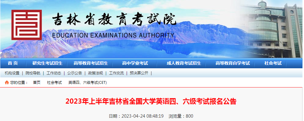 從中國(guó)教育考試網(wǎng)發(fā)布的《2023年上半年全國(guó)大學(xué)英語(yǔ)四、六級(jí)考試報(bào)名工作啟動(dòng)通知》、《2023上半年全國(guó)大學(xué)英語(yǔ)四、六級(jí)考試(CET)考生須知》、《2023上半年全國(guó)大學(xué)英語(yǔ)四、六級(jí)考試口語(yǔ)考試(CET-SET)考生須知》和吉林省教育考試院《關(guān)于做好2023年上半年吉林省全國(guó)大學(xué)英語(yǔ)四、六級(jí)考試報(bào)名公告》以及吉林各院校發(fā)布的報(bào)考通知得知,2023上半年吉林英語(yǔ)六級(jí)報(bào)名時(shí)間、條件、流程及入口已公布,4月27日-5月8日進(jìn)行報(bào)名,具體詳情如下: