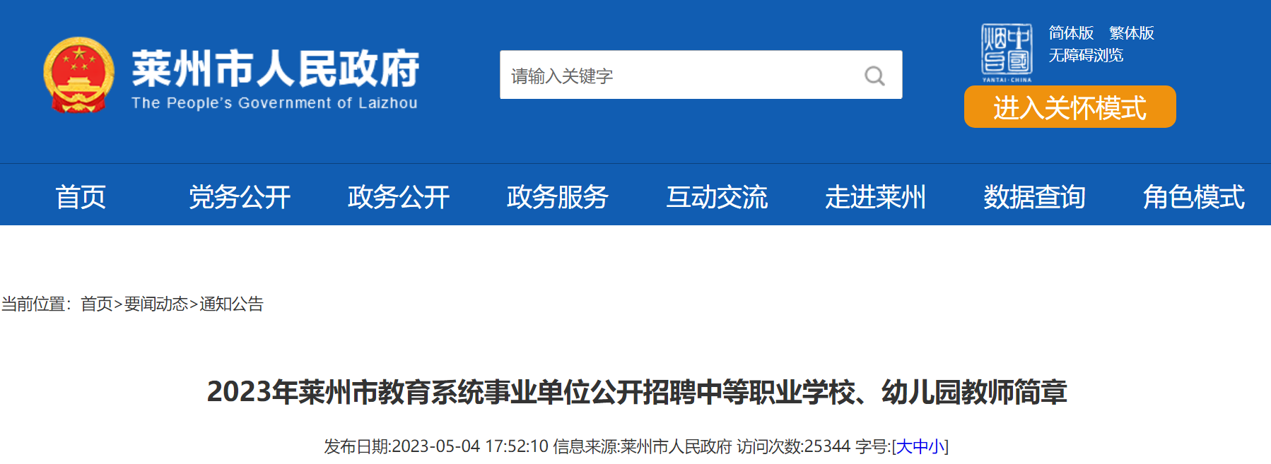 招聘通知、招聘信息公告公示網(wǎng)站:萊州市政府網(wǎng)