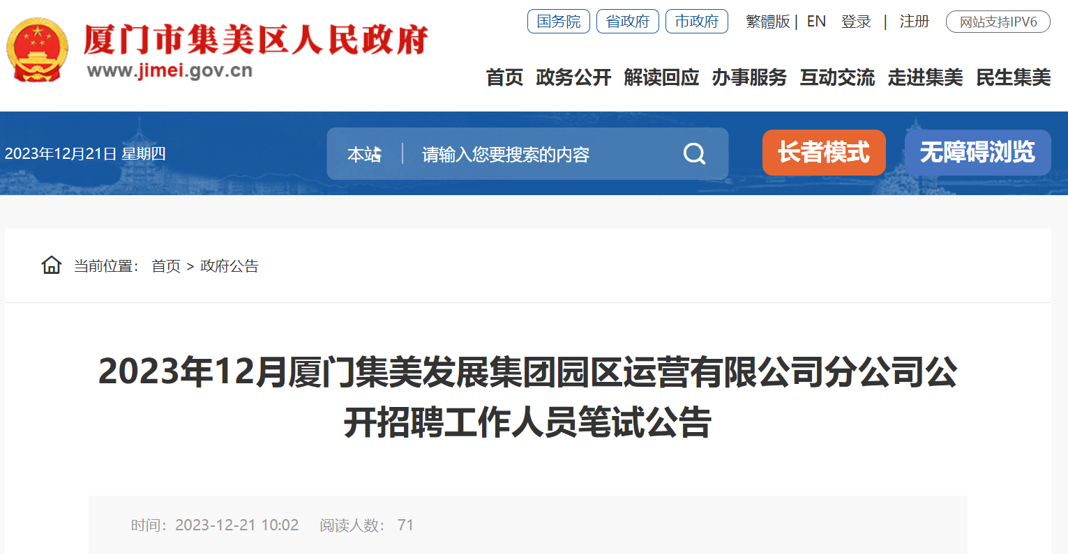 根據(jù)《2023年12月廈門集美發(fā)展集團(tuán)園區(qū)運營有限公司分公司公開招聘工作人員簡章》,經(jīng)過報名及資格初審,現(xiàn)將筆試有關(guān)事項公布如下: