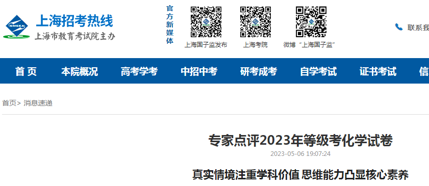 高中會考頻道從上海市教育考試院了解到,專家點評2023年上海市普通高中學(xué)業(yè)水平等級性考試化學(xué)試卷公告已發(fā)布。詳情如下: