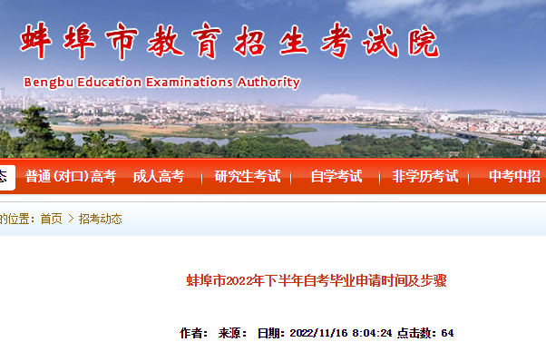 自考頻道從蚌埠市教育招生考試院了解到,安徽蚌埠2022年下半年自考畢業(yè)申請時間及步驟已發(fā)布,詳情如下: