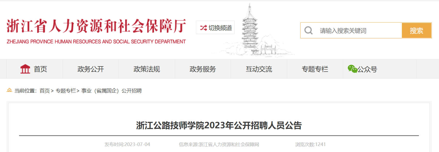 2.浙江省交通運(yùn)輸廳網(wǎng)(http://jtyst.zj.gov.cn/,政府信息公開(kāi)/人事信息/事業(yè)單位考試);