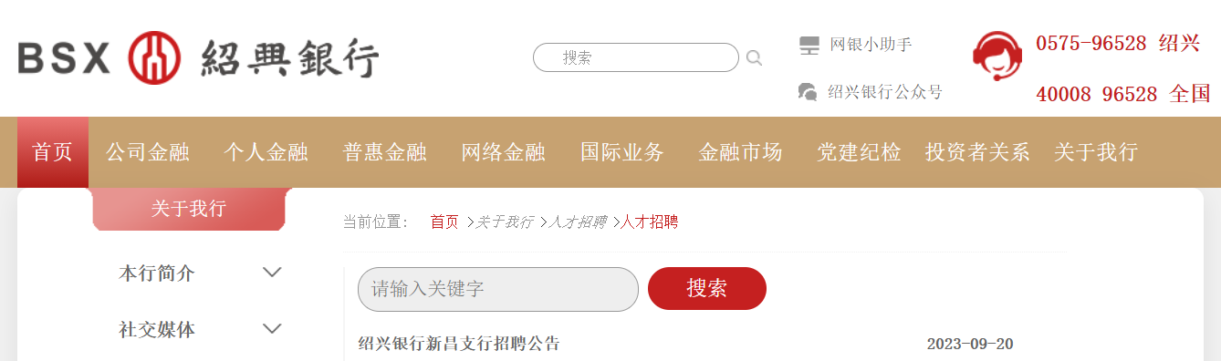 2023年浙江紹興銀行新昌支行招聘12人,報名時間:2023年9月27日24時截止,現(xiàn)將招聘公告發(fā)布如下: