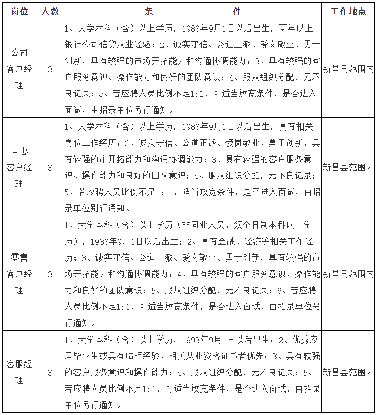 因新昌支行業(yè)務發(fā)展需要,現(xiàn)面向新昌縣范圍內(nèi)定向誠聘英才,我們熱忱歡迎各位英才加盟,攜手同行,共創(chuàng)輝煌!