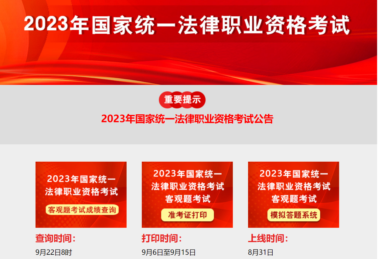 從司法部發(fā)布的《2023年國家統(tǒng)一法律職業(yè)資格客觀題考試成績、合格分數(shù)線公布和主觀題考試報名、交費等事項的公告》得知,2023年西藏法律職業(yè)資格客觀題考試成績查詢時間及入口已公布,9月22日8時起查分,具體詳情如下: