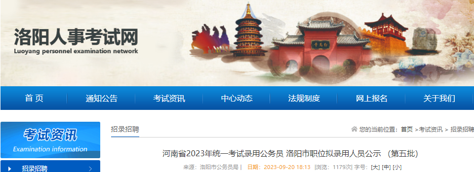 按照《河南省2023年統(tǒng)一考試錄用公務(wù)員公告》有關(guān)要求,經(jīng)過(guò)筆試、面試、體檢(體能測(cè)評(píng))和考察等環(huán)節(jié),現(xiàn)將洛陽(yáng)市職位擬錄用人員(第五批)予以公示(名單詳見(jiàn)附件)。