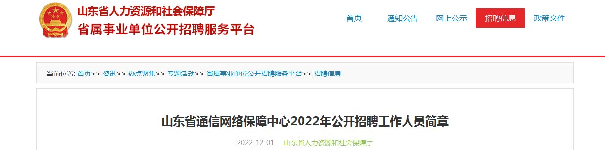山東省人力資源和社會(huì)保障廳網(wǎng)站(http://hrss.shandong.gov.cn)和山東省通信管理局網(wǎng)站(https://sdca.miit.gov.cn/)面向社會(huì)發(fā)布招聘信息。