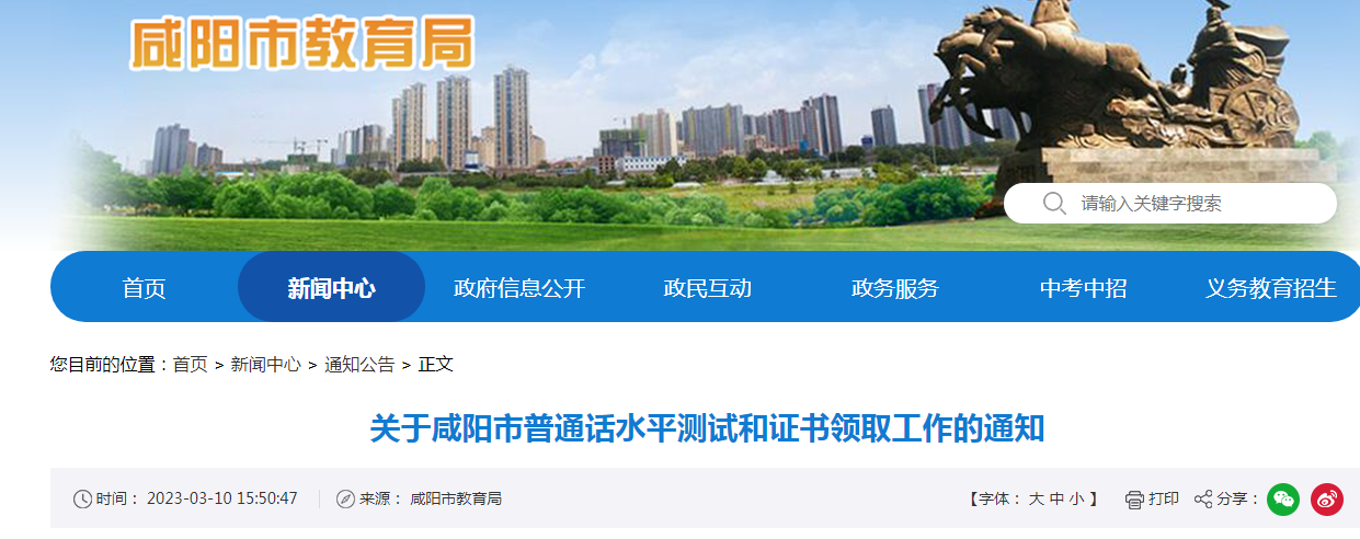 原文標(biāo)題:關(guān)于咸陽市普通話水平測試和證書領(lǐng)取工作的通知