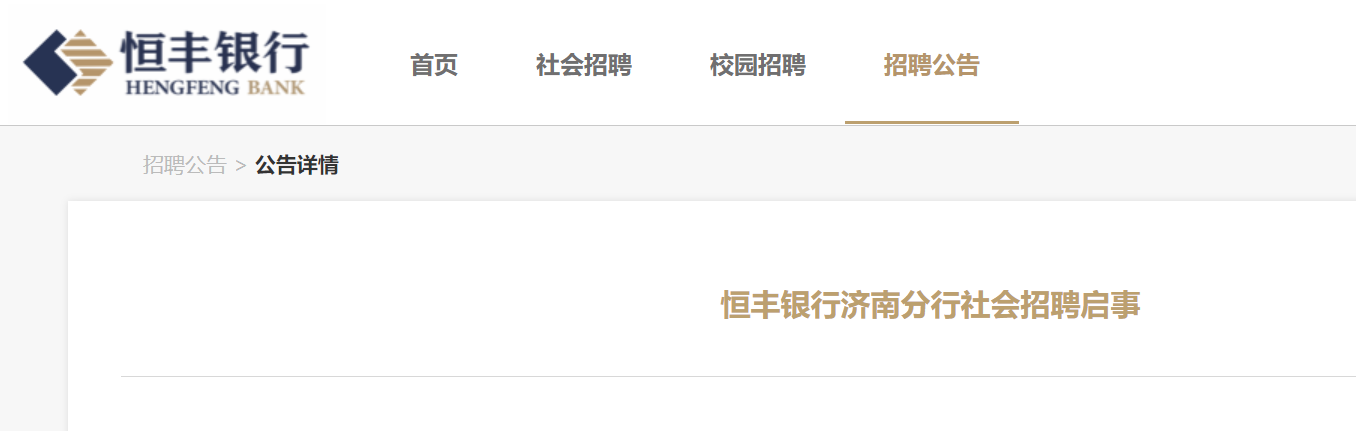 2024年恒豐銀行山東濟(jì)南分行社會(huì)招聘啟事已發(fā)布,報(bào)名截止時(shí)間:2024年1月31日?,F(xiàn)將招聘公告原文發(fā)布如下: