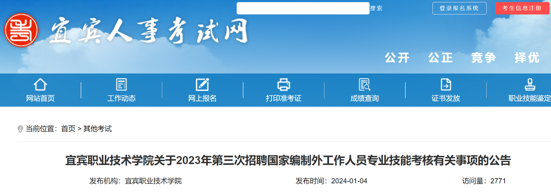 根據(jù)《宜賓職業(yè)技術(shù)學(xué)院關(guān)于2023年第三次招聘國家編制外工作人員的公告》規(guī)定,現(xiàn)就宜賓職業(yè)技術(shù)學(xué)院現(xiàn)場資格審查和專業(yè)技能考核有關(guān)事項(xiàng)公告如下。一、現(xiàn)場資格審查