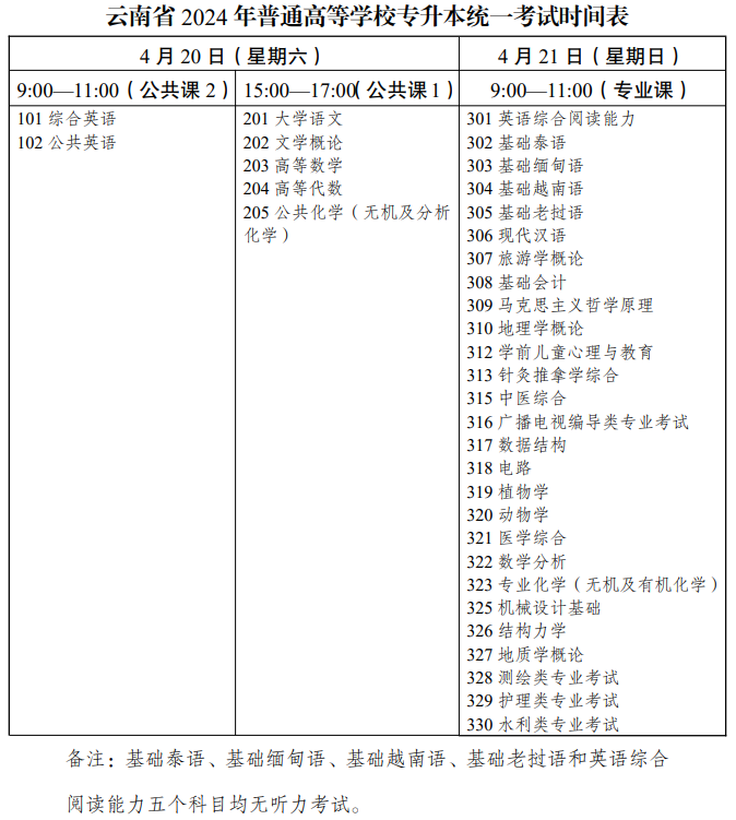 專(zhuān)升本考試頻道根據(jù)云南省招生考試院公布的《云南2024年普通高等學(xué)校專(zhuān)升本考試網(wǎng)上報(bào)名須知》了解到,云南曲靖2024年普通高等學(xué)校專(zhuān)升本考試時(shí)間已公布,考試時(shí)間為2024年4月20—21日。具體如下: