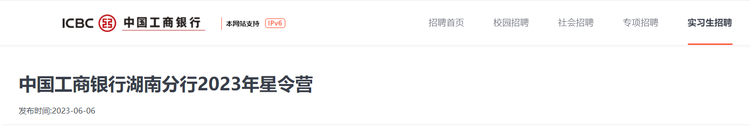 2023年中國工商銀行湖南分行星令營暑期實習招募簡章已發(fā)布,報名時間:2023年6月20日截止,提醒各位同學,機會難得,趕快行動起來報名吧!現(xiàn)將招聘公告發(fā)布如下: