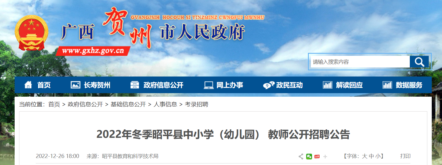 原文標(biāo)題:2022年冬季昭平縣中小學(xué)(幼兒園) 教師公開招聘公告