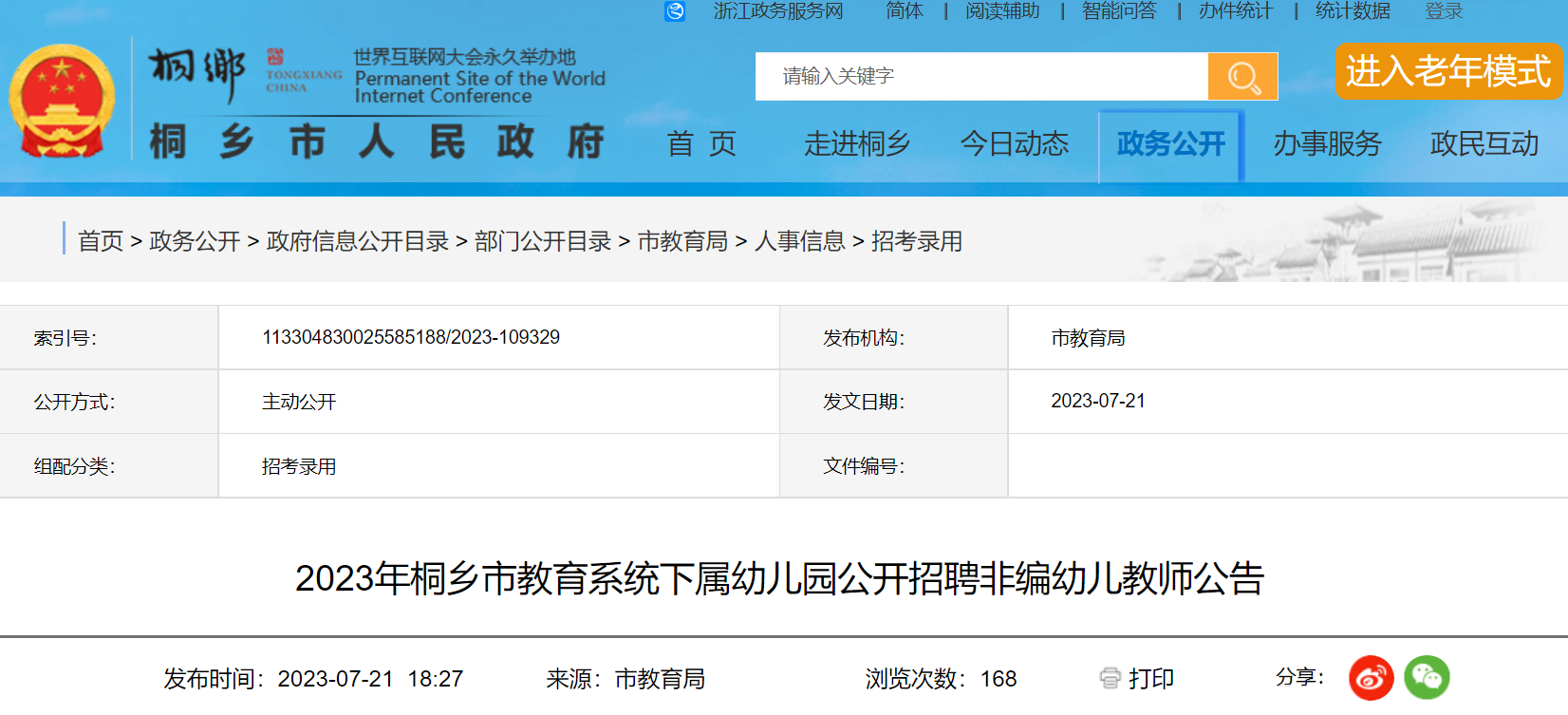 2023年浙江嘉興桐鄉(xiāng)市教育系統(tǒng)下屬幼兒園公開招聘非編幼兒教師47人,報名時間:2023年7月27日9:00-7月28日16:00?,F(xiàn)將招聘公告原文發(fā)布如下: