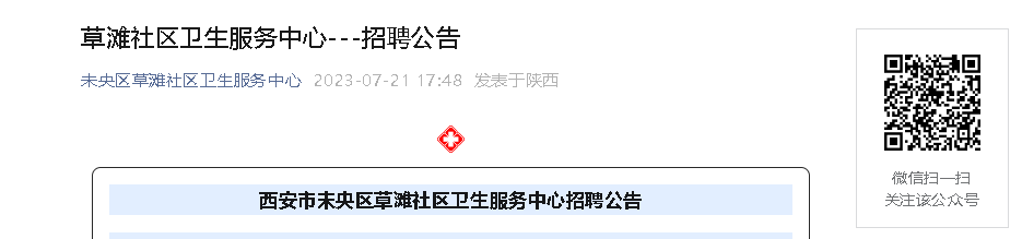 2023陜西西安未央?yún)^(qū)草灘社區(qū)衛(wèi)生服務中心招聘15人,郵箱:444584676@qq.com,現(xiàn)將招聘公告原文發(fā)布如下: