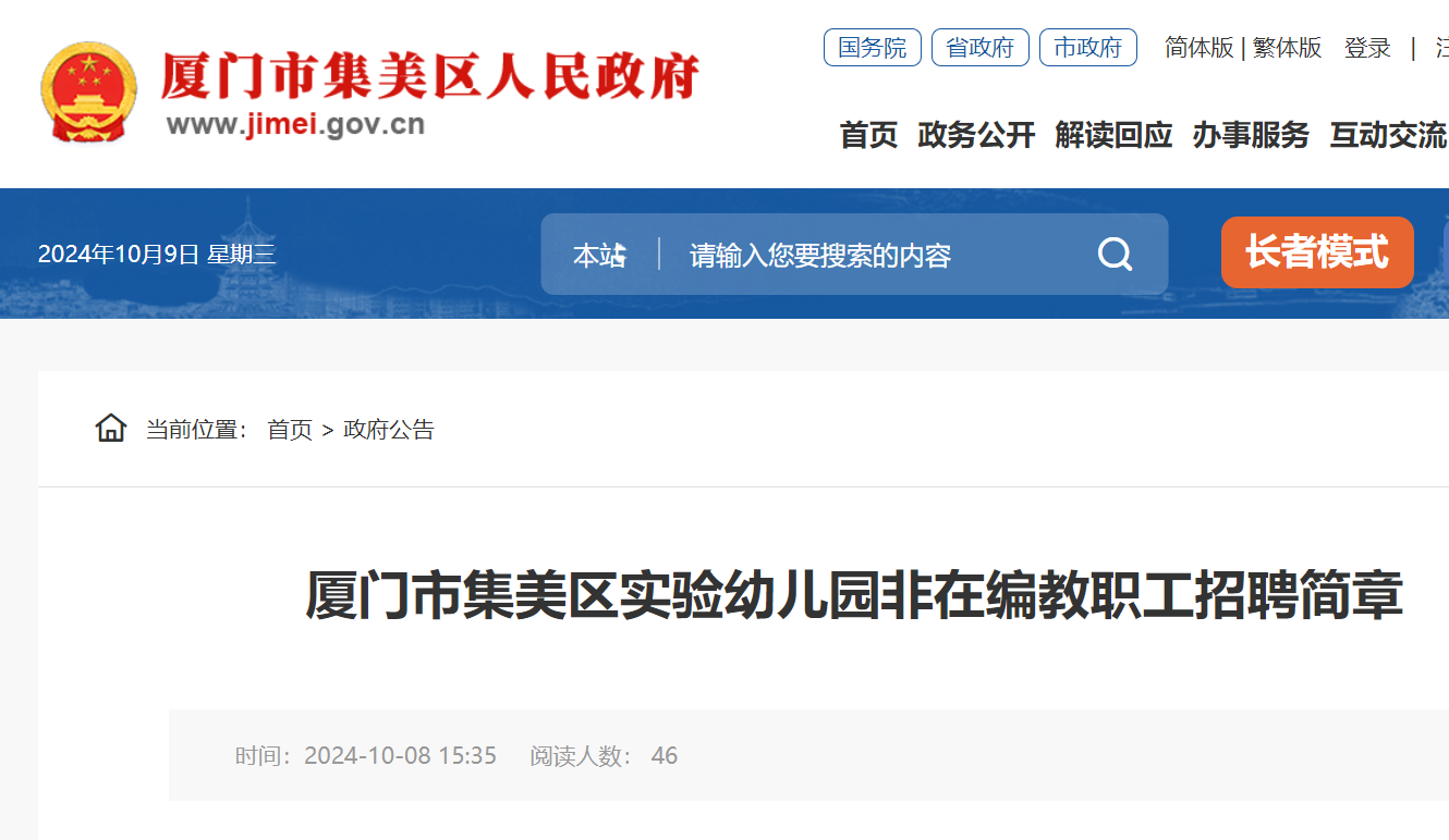 2024福建廈門市集美區(qū)實(shí)驗(yàn)幼兒園非在編教職工招聘簡章已發(fā)布,報(bào)名時(shí)間:即日起至2024年10月12日?,F(xiàn)將招聘公告原文發(fā)布如下: