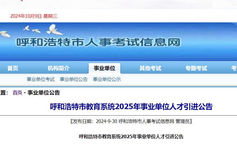 小編根據(jù)呼和浩特市教育局發(fā)布“呼和浩特市教育系統(tǒng)2025年事業(yè)單位人才引進公告”得知,2025內(nèi)蒙古呼和浩特市教育系統(tǒng)事業(yè)單位人才引進475人,報名時間為2024年10月14日9時—10月28日17時。