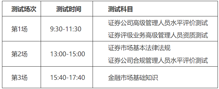 小編根據(jù)中國證券業(yè)協(xié)會發(fā)布”關于2024年1月證券行業(yè)專業(yè)人員水平評價預約測試公告“得知,2024年1月證券行業(yè)專業(yè)人員水平評價預約考試時間為1月25日,測試科目如下: