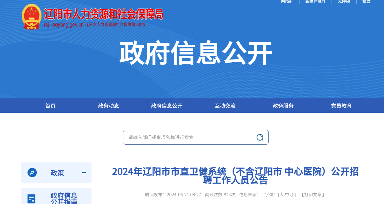 2024年遼寧遼陽(yáng)市市直衛(wèi)健系統(tǒng)(不含遼陽(yáng)市中心醫(yī)院)公開招聘工作人員公告已發(fā)布,報(bào)名時(shí)間:2024年6月21日至6月30日?,F(xiàn)將招聘公告原文發(fā)布如下: