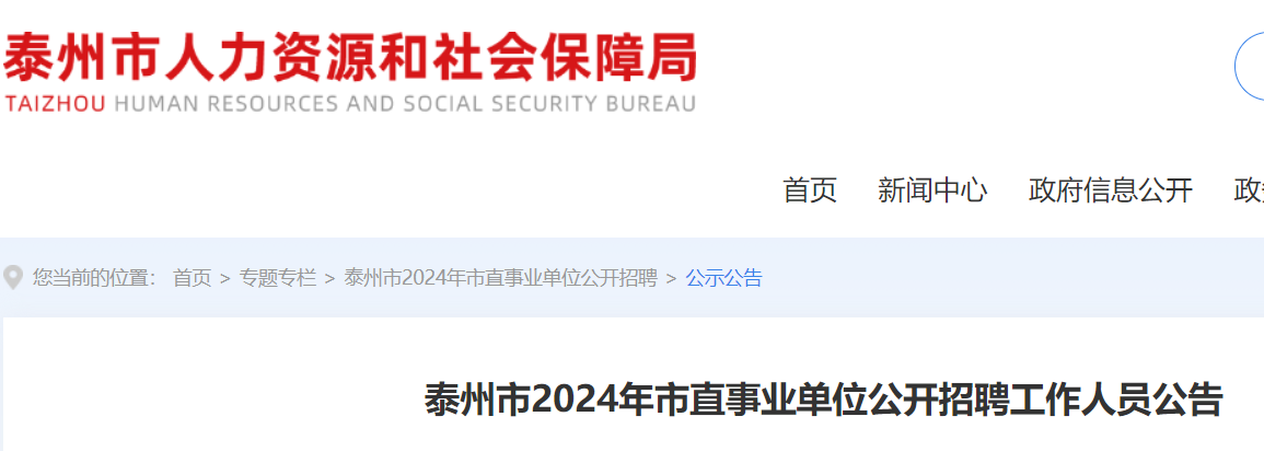 小編根據(jù)泰州市人力資源和社會(huì)保障局發(fā)布”泰州市2024年市直事業(yè)單位公開招聘工作人員公告“得知,2024年江蘇泰州市市直事業(yè)單位公開招聘工作人員80人,報(bào)名時(shí)間為2月29日-3月5日。